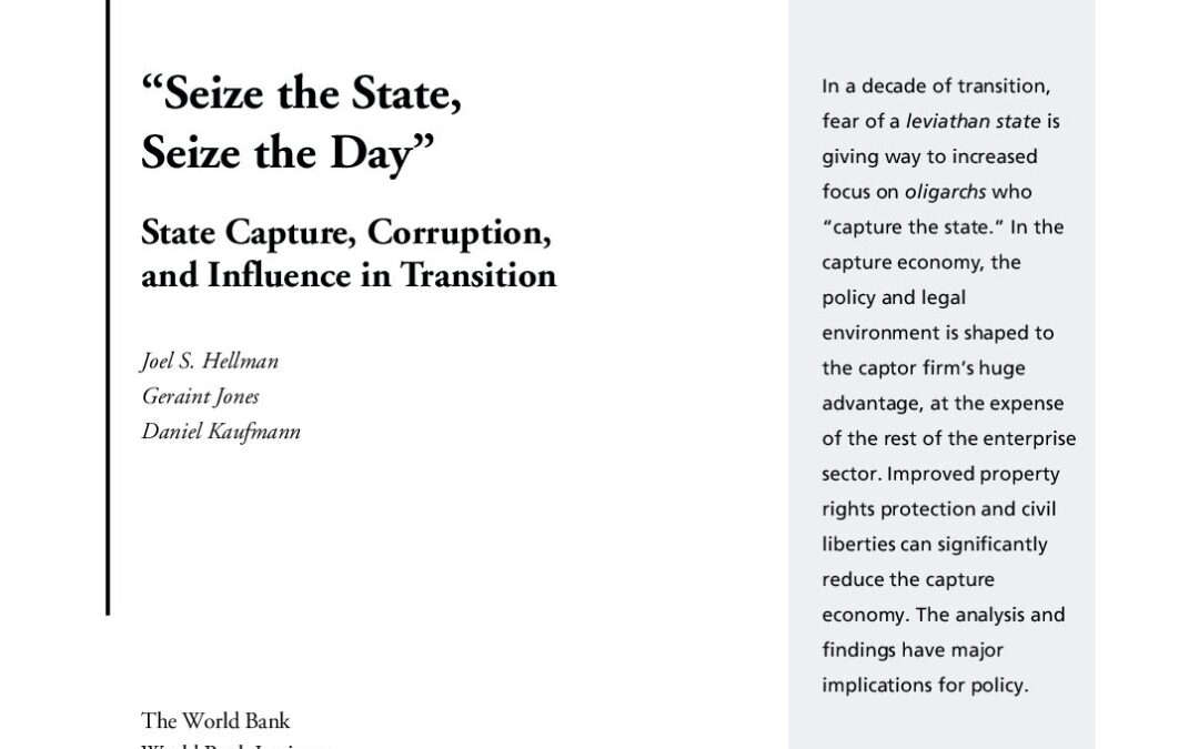 Hellman, Jones, Kaufmann – 2000 – Seize the State, Seize the DayAn Empirical Analysis of State Capture and Corruption in Transition Econ