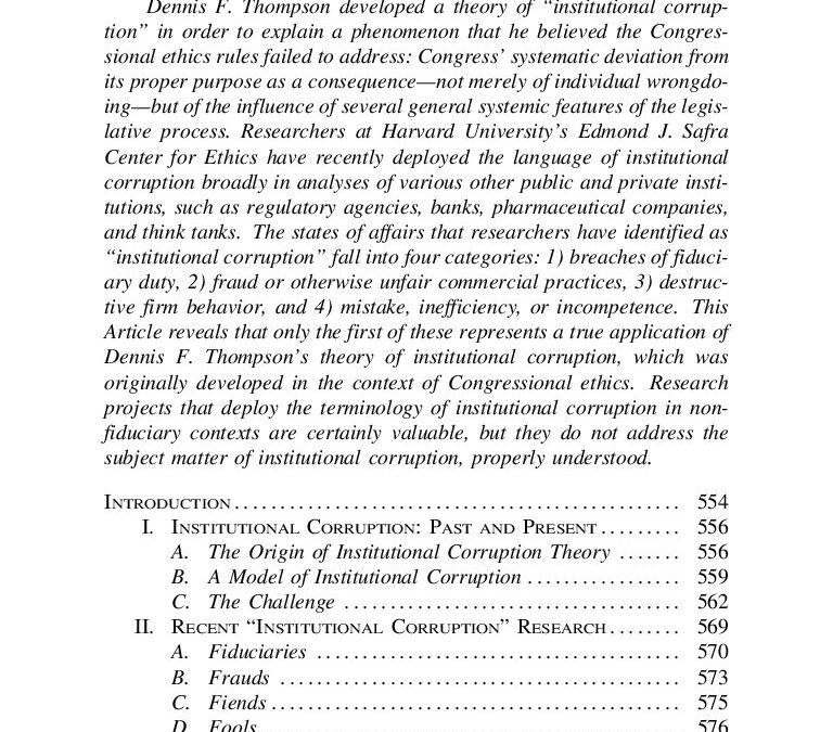 Newhouse – 2013 – Institutional Corruption A Fiducuary Theory