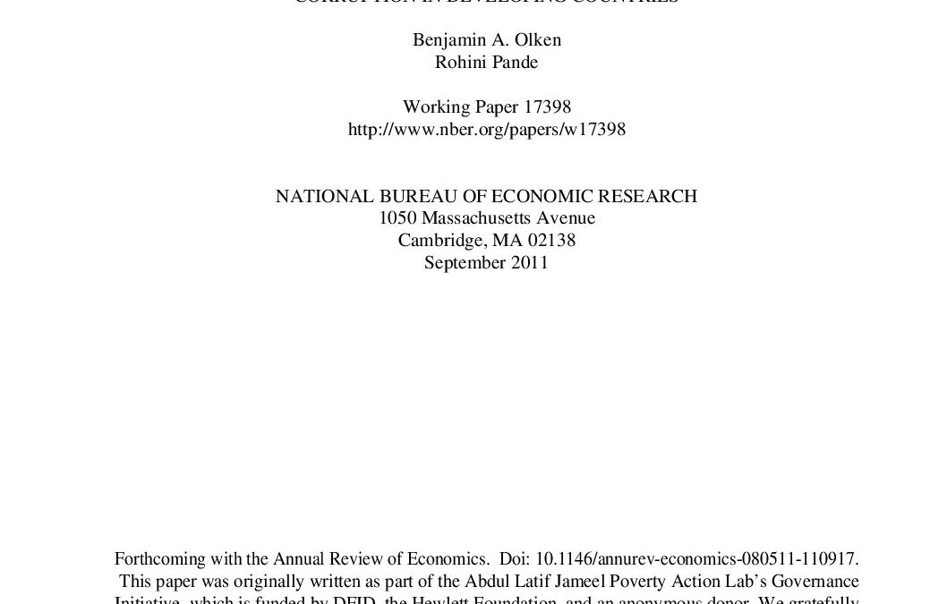 Olken, Pande – 2012 – Corruption in Developing Countries